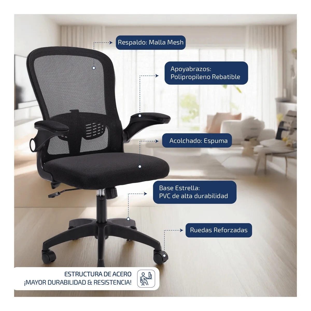 Diseño moderno, materiales duraderos y comodidad para tus jornadas diarias. Perfecto para home office o espacios ejecutivos.